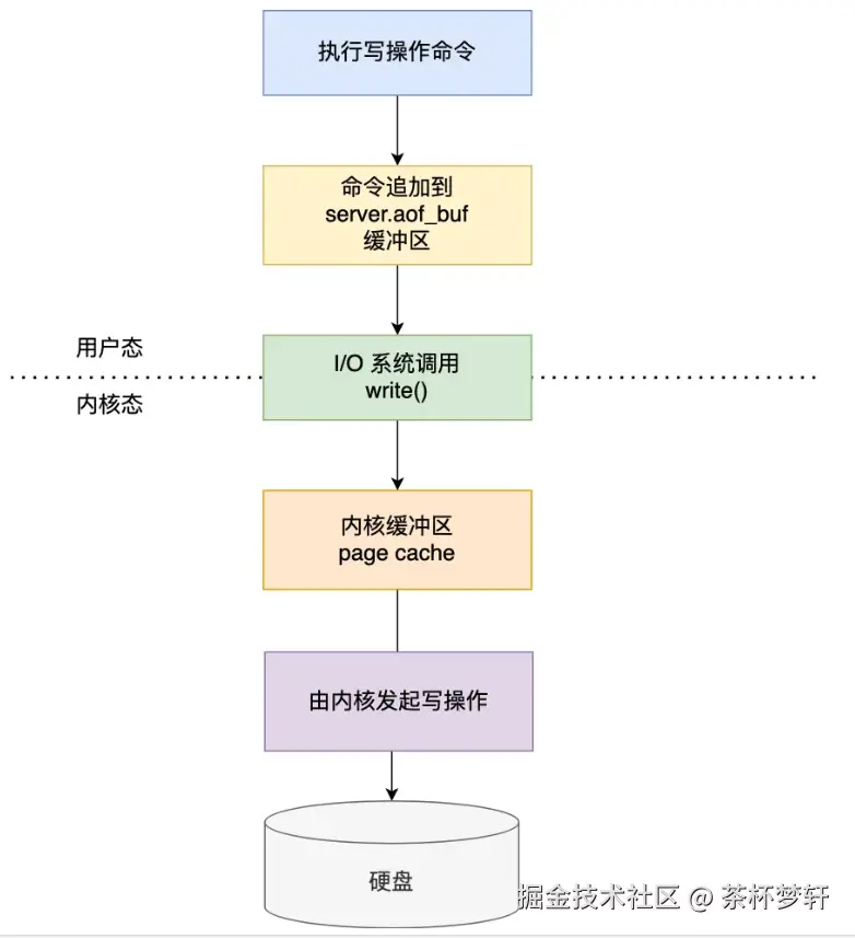 客户端发起写命令 → Redis 在内存中执行