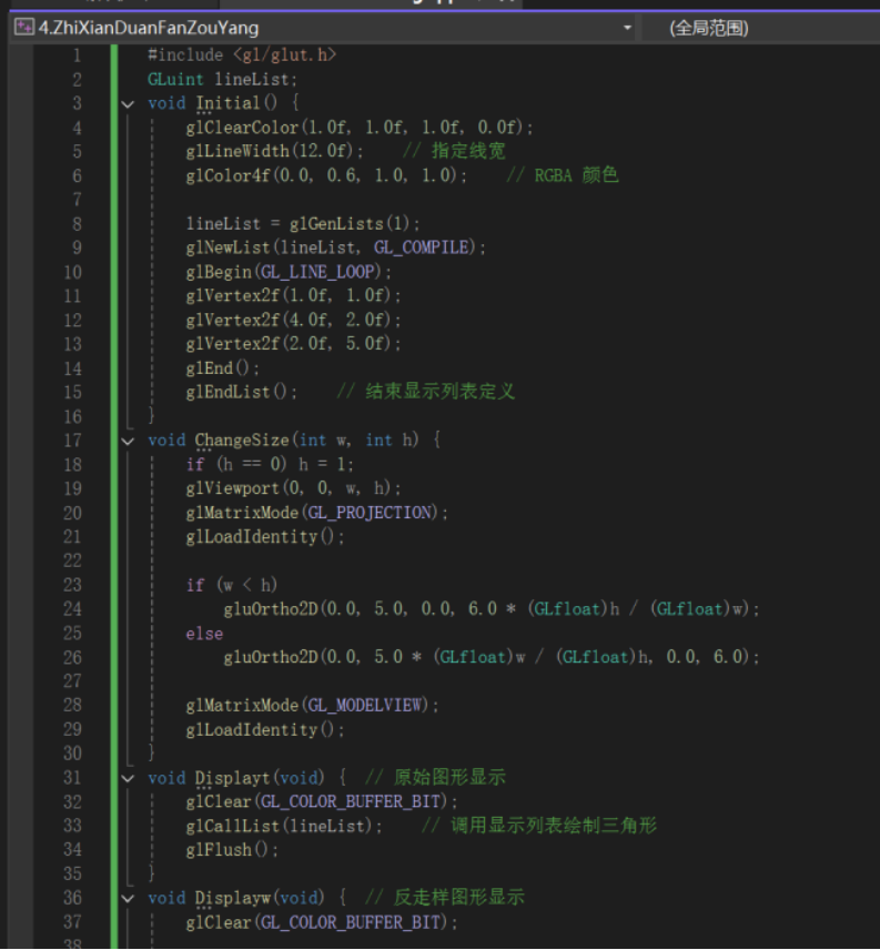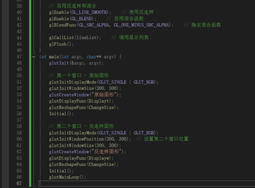 掌握在 OpenGL 环境中实现直线段反走样的具体流程,包括启用反走样功能、配置颜色混合函数等关键步骤。
