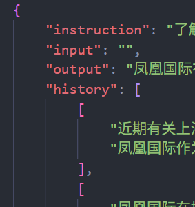 instruction是最新一轮的问,output是最新一轮的回答,history是之前的问和回答