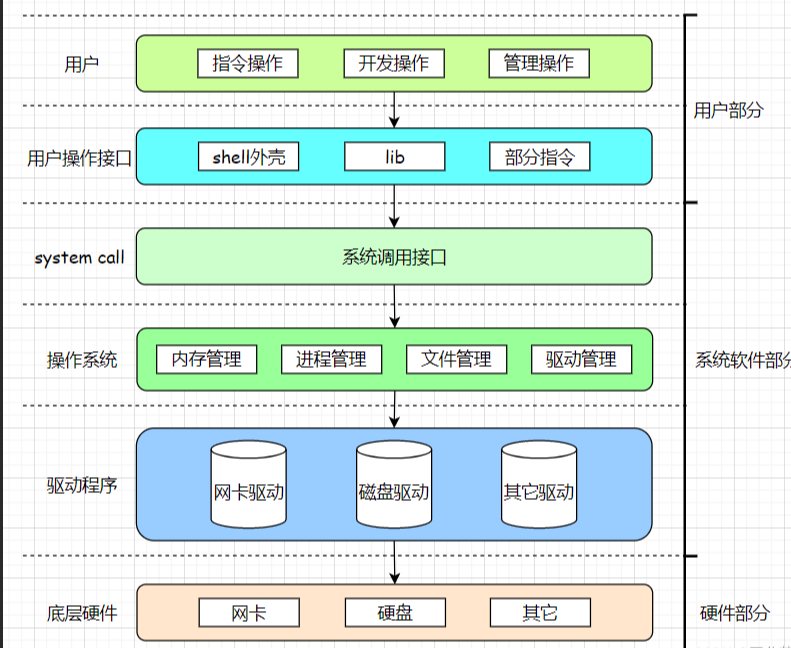 • Linux下⼀切皆⽂件(键盘、显⽰器、⽹卡、磁盘......这些都是抽象化的过程)(后⾯会讲如何去