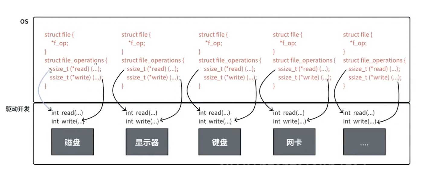 所以从键盘读取数据,其实是OS创建文件,用户调用read OS调用struct file 中的 read(),然后在调用底层read