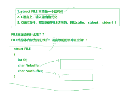 因为库函数是对系统调用接口的封装,本质上访问文件都是通过文件描述符fd进行访问的,所以C库当中的FILE结构体内部必定封装了文件描述符fd。