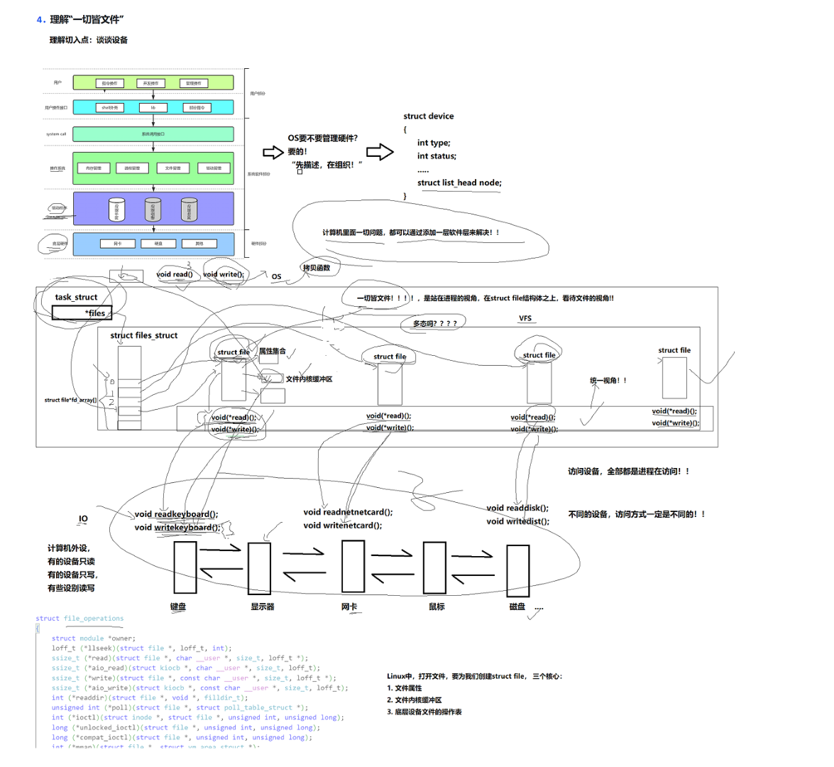 先描述,在组织。每个硬件都有其对应的PCB,每个硬件的读取和写入的方法是不同的,为了方便用户层,会在内存中以形成对应的文件,每个文件包含,每个struct file 包含其属性,文件内核缓冲区,对应底层设备的缓冲表。所以访问设备,其实就是访问进程,所以站在进程的角度看一切皆文件。计算机里面的一切问题都可以通过加一层软件层来解决。