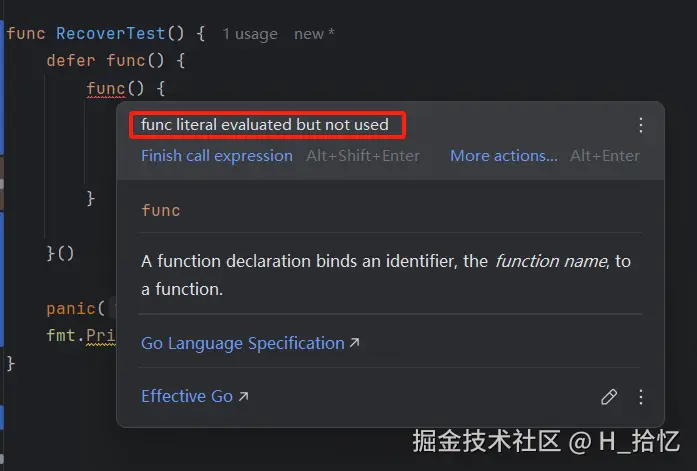 就可用于消除panic.同时返回panic()函数的参数.如果程序没有发生panic.则re