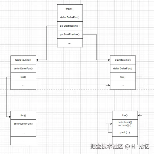 程序启动了两个协程.某协程中函数foo()产生了panic.并且在foo()函数中成功捕获