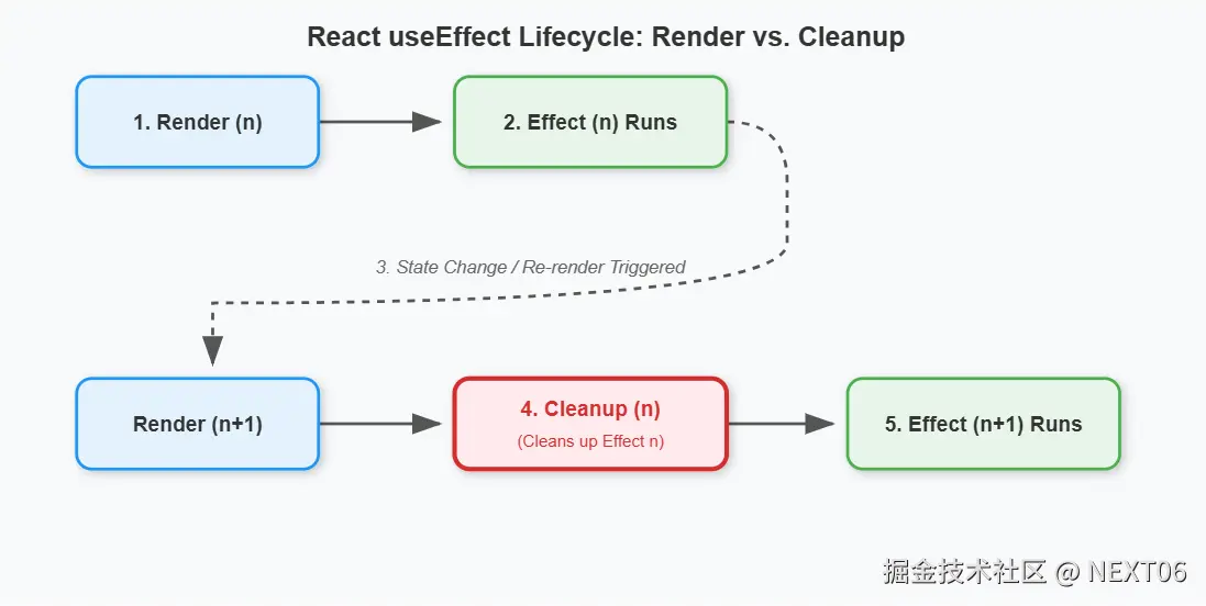 在 useEffect 中返回的函数被称为清理函数 (Cleanup Function) 。它是防止内存泄漏的关键。