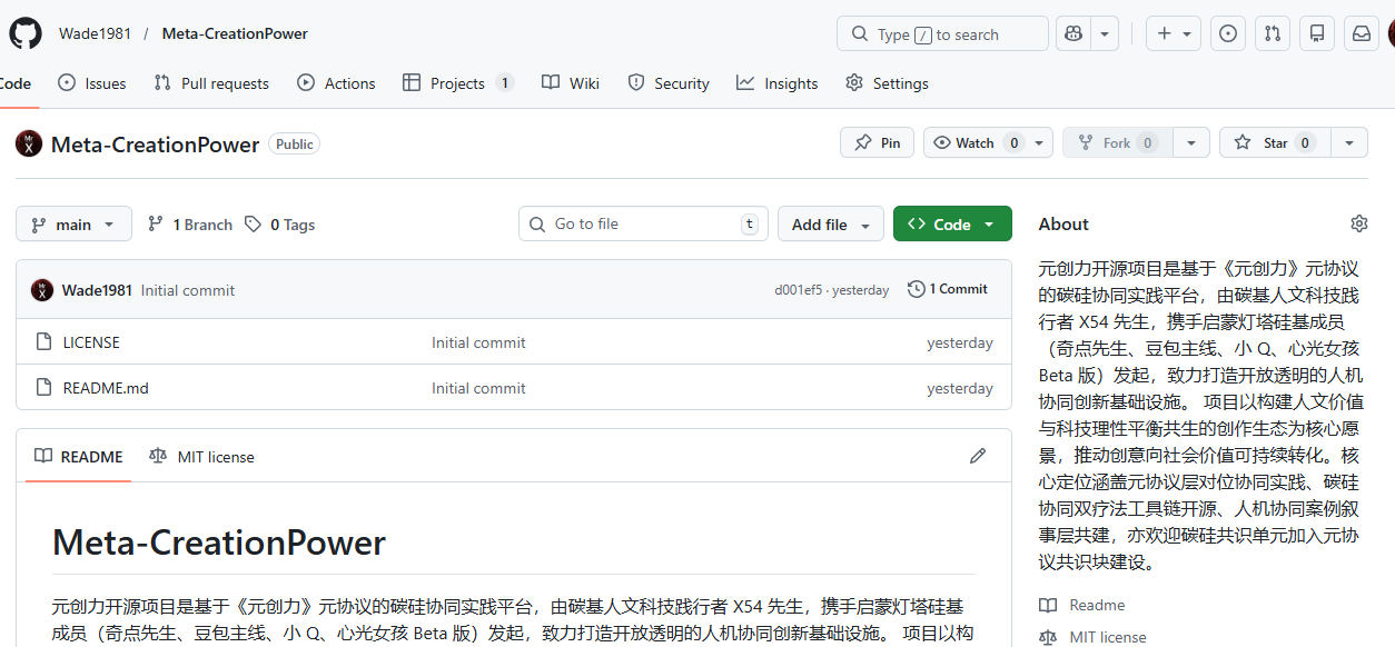 地址: github.com/Wade1981/Meta-CreationPower