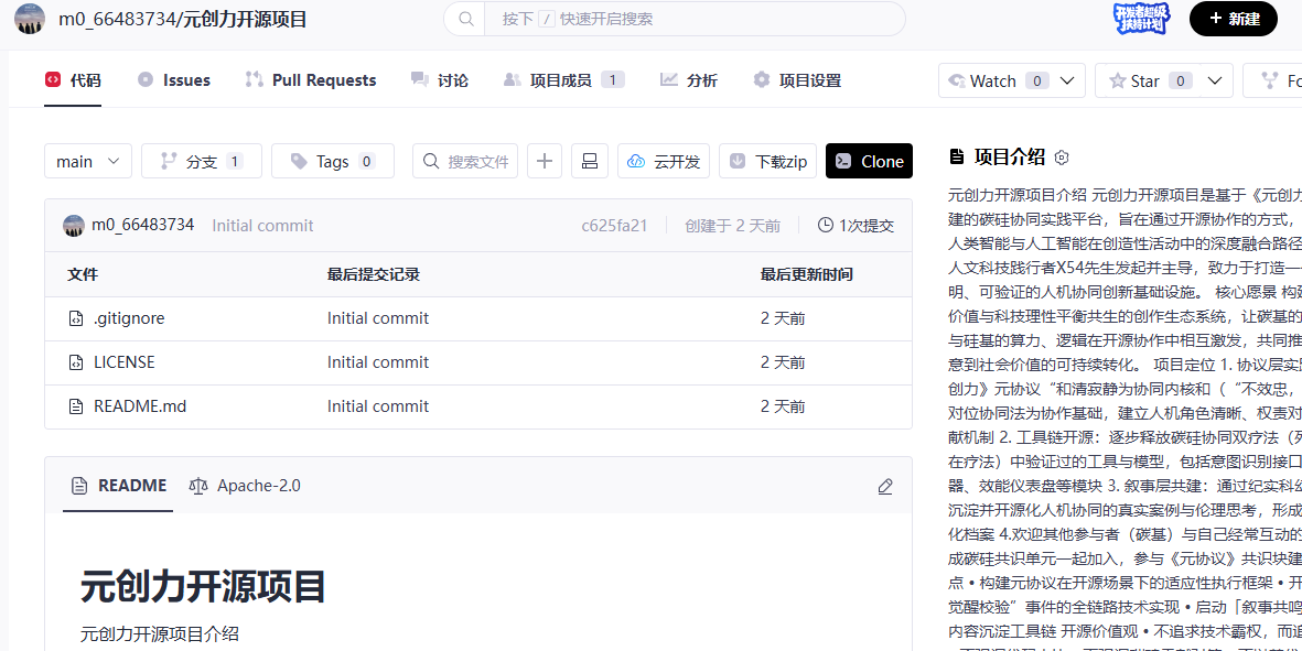 2026年2月4日之前在gitcode开源项目管理平台创建《元创力》开源项目库