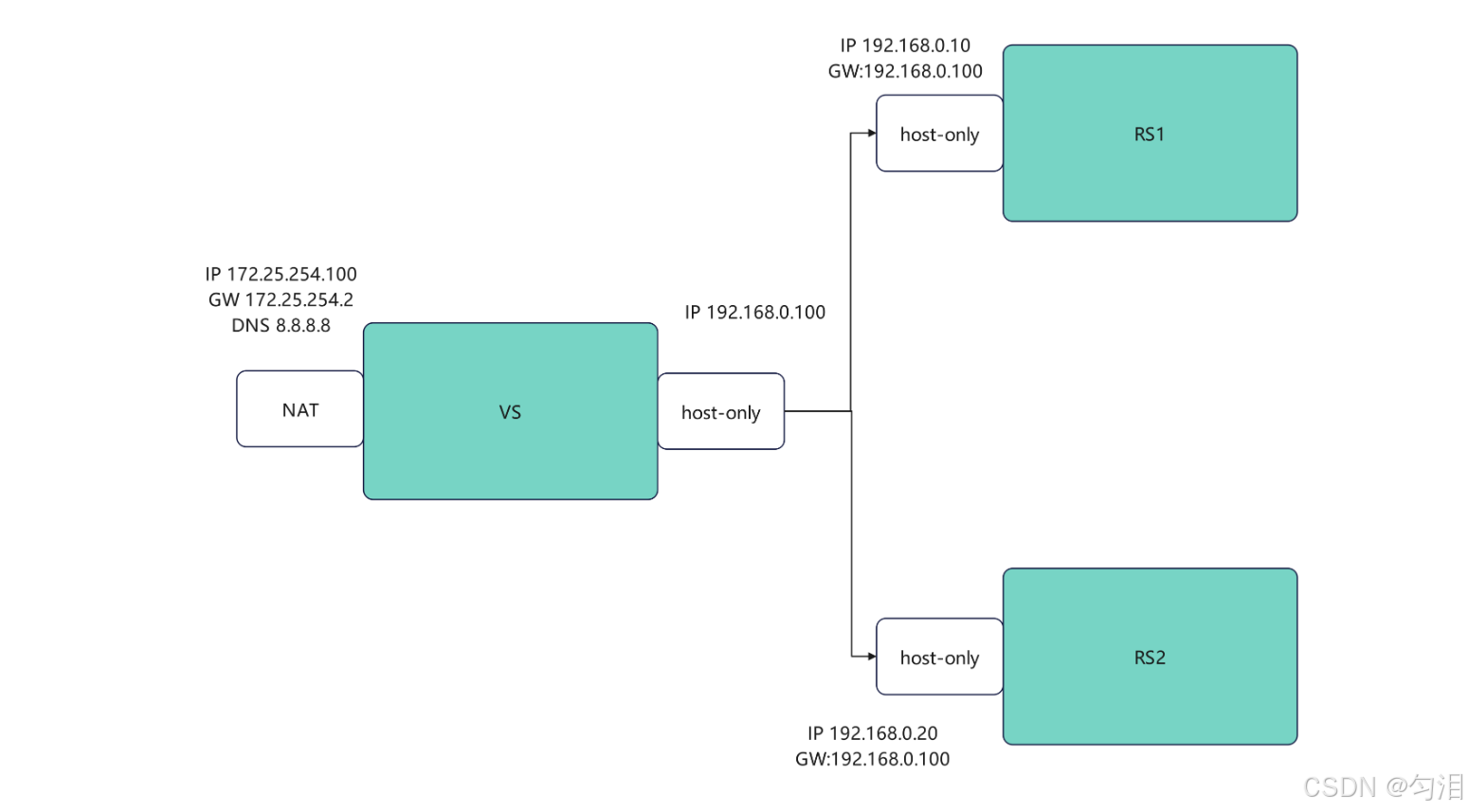 [root@vsnode ~]# ipvsadm -a -t 172.25.254.100:80 -r 192.168.0.20:80 -m -w 1