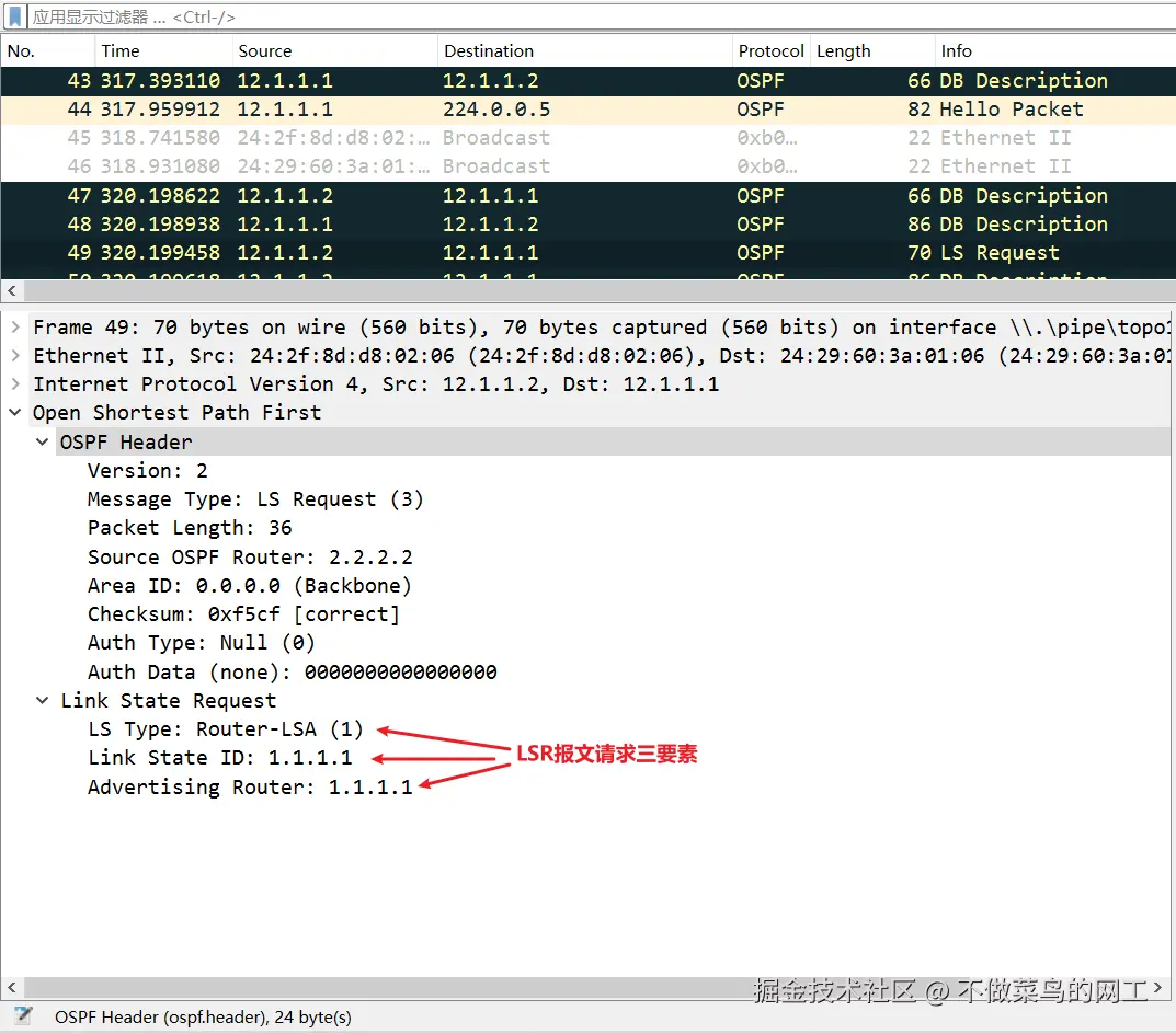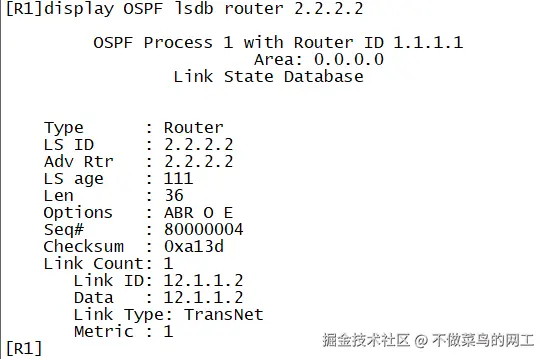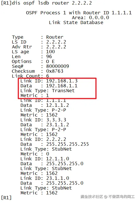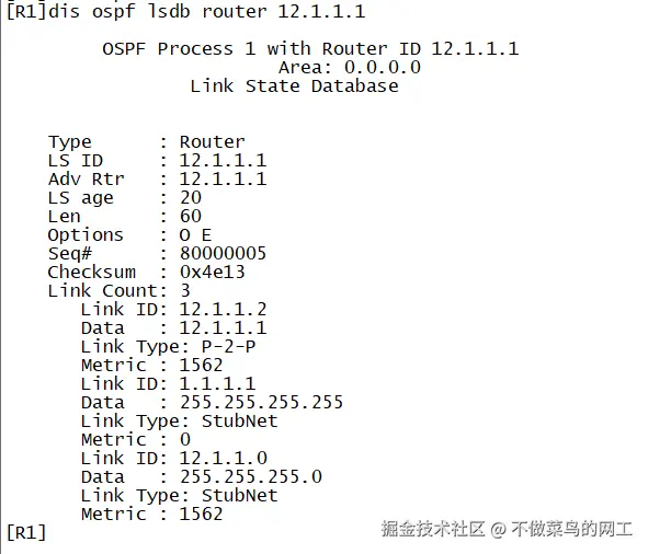 LSA三要素 :LS Type+Link State ID+Advertising Router共同唯一标识 一条LSA。