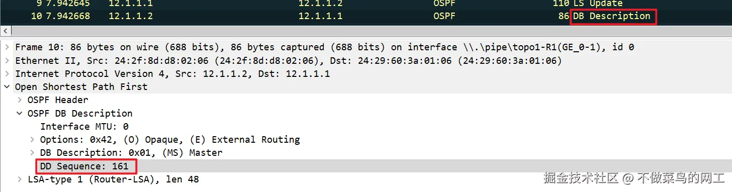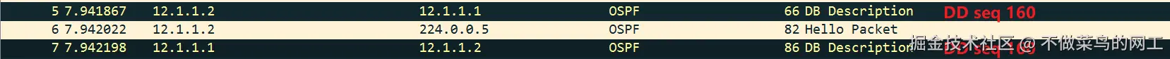 问题现象 :如标题所述,当OSPF接口MTU不匹配且开启检测时,邻居状态会卡在ExStart或ExChange,导致邻接无法建立。