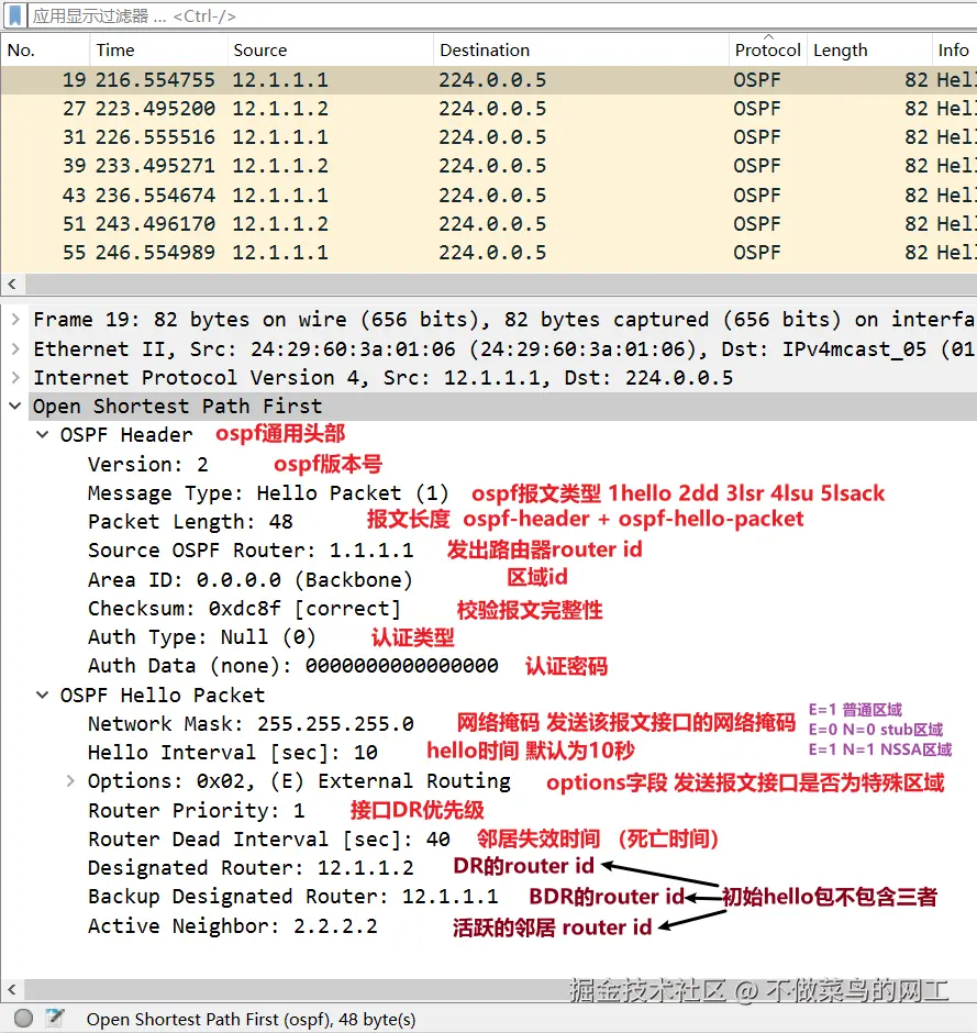 | 点到多点 | 无默认,常手动配置 | 否 | 30s/120s | Hello: 224.0.0.5; 其他: 单播 |