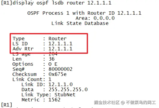 - Advertising Router :始发路由器Router ID。