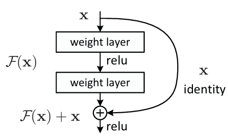 残差块通过 加法操作 将输入x 直接传递到输出端。这形成了一个"信息高速公路",即使中间的权重层全为零,输出仍为x 。
