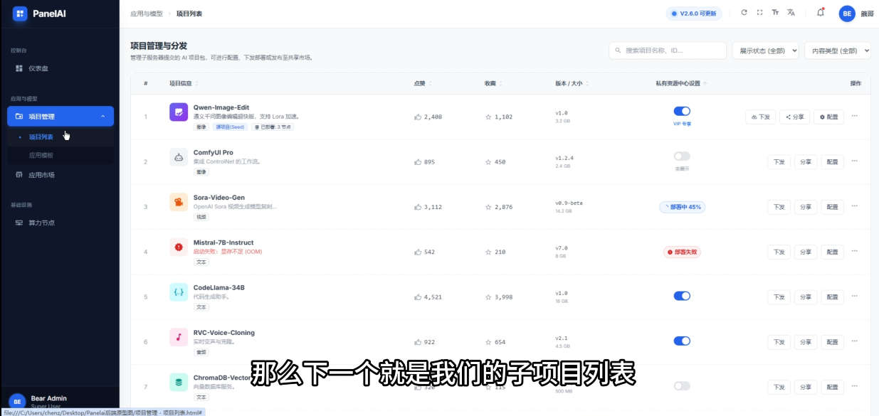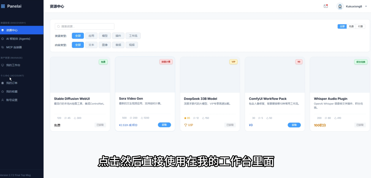 一键分发展示 :总控端审核后可直接发布至前端首页,无论是团队、工作室还是企业用户,都能在工作台 实现一键启动。