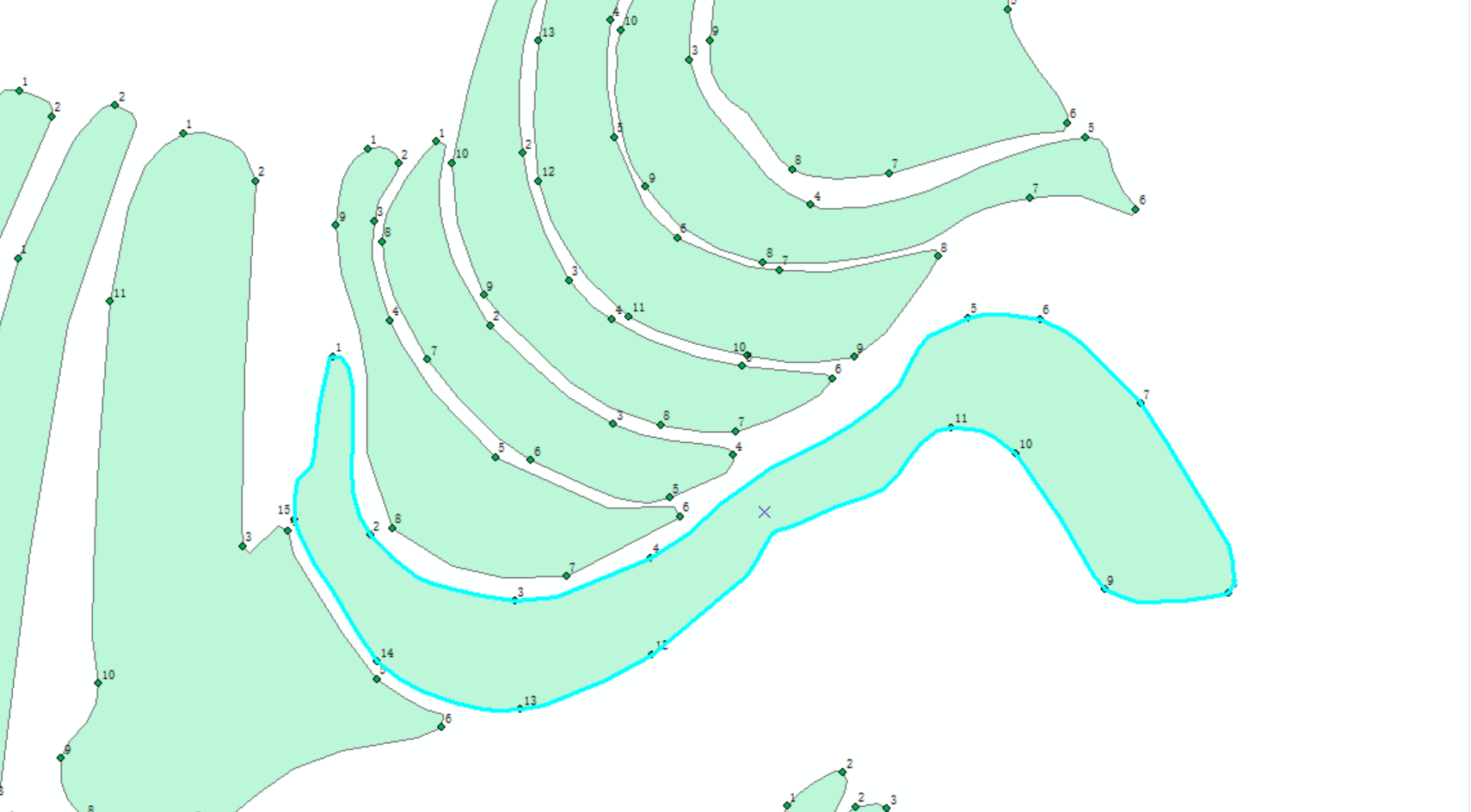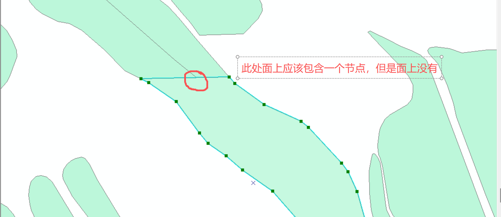 面的边界上有其他地块的顶点(面节点优化),如果面没这些点,面增加这些节点。这修复后,界址线生成过程不会中断。