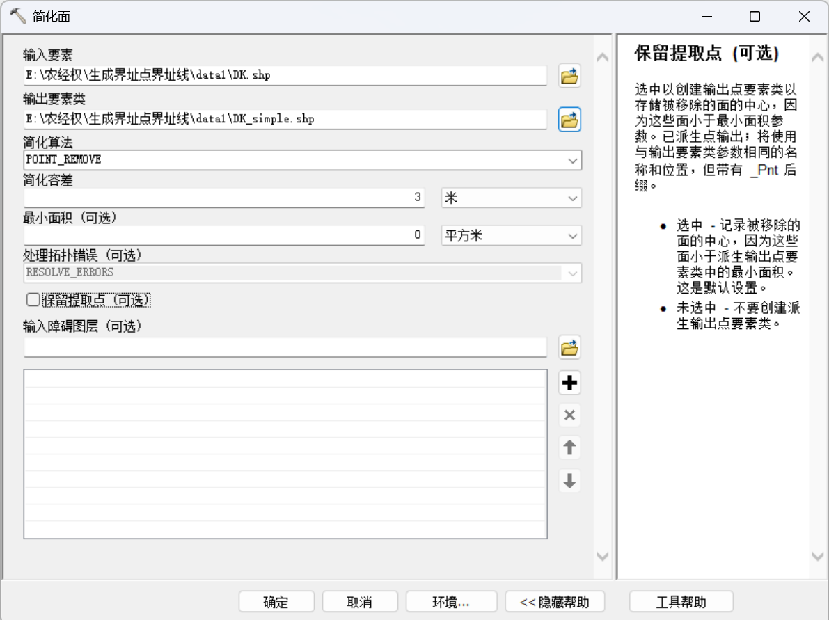简化面也能生成界址点(界址点抽稀),如果有界址点抽稀要求的,可以通过简化面(保证界址点号的连续)后再生成界址点。这个对出承包地块调查表很重要。