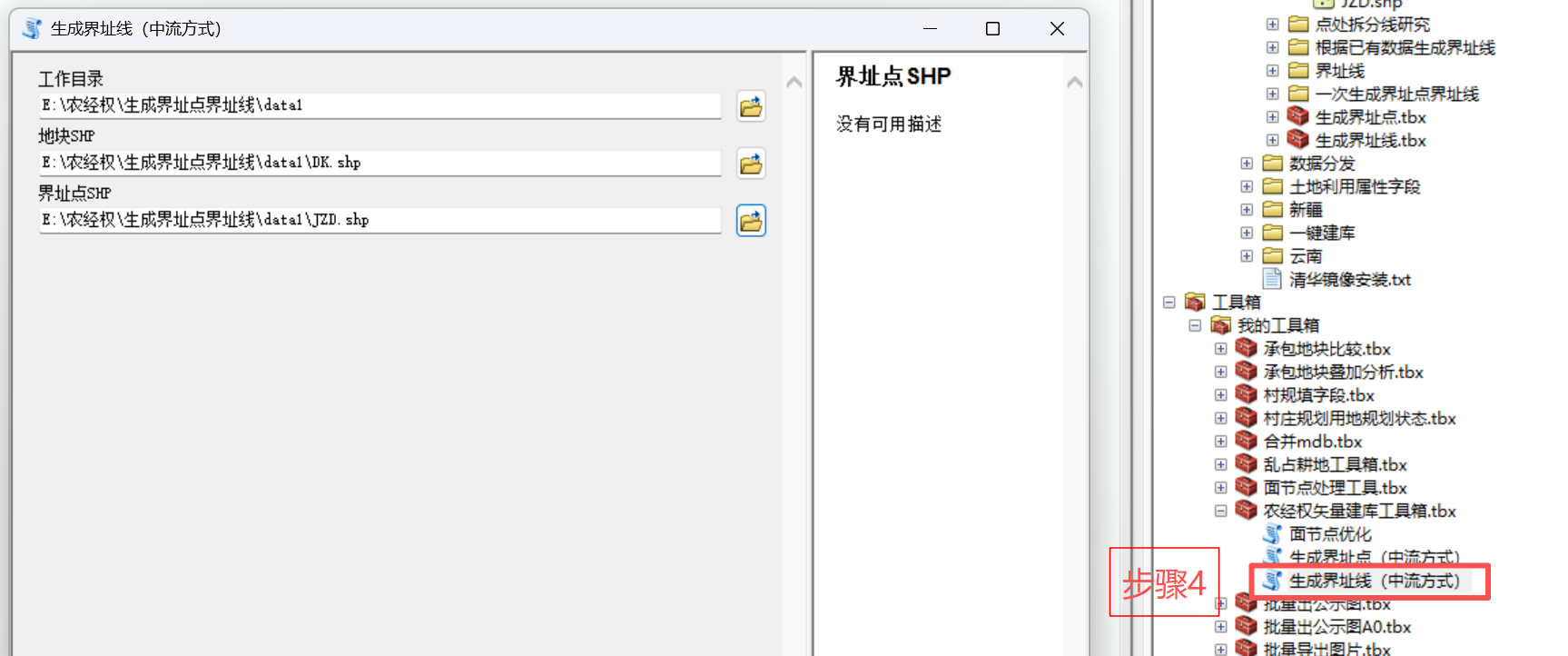 - 4、最后用DK.shp与第3步生成的JZD.shp生成界址线。其中会生成很多中间的图层,如果中断了可以从其中找找原因。