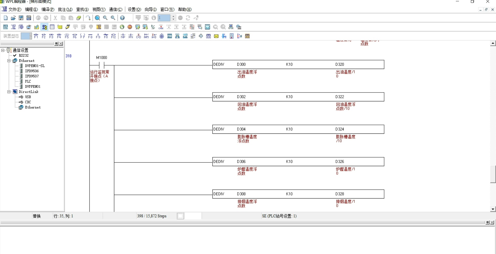 这个ANDF指令是台达的移动平均滤波指令,实测能把现场干扰导致的数值抖动压到±1℃以内。DIV指令处理量程转换时注意除数要根据实际传感器量程调整。