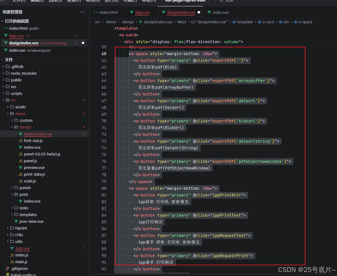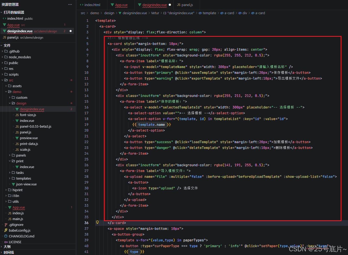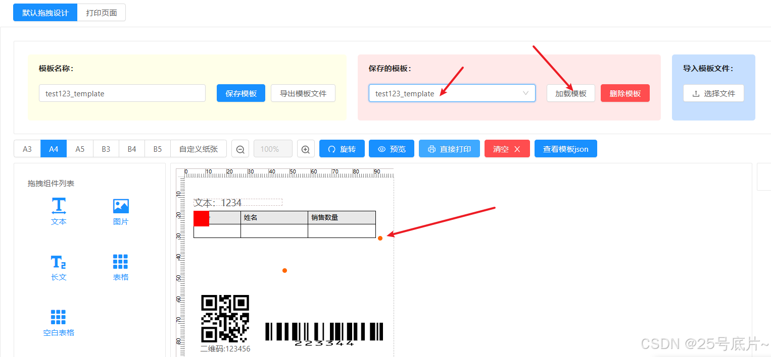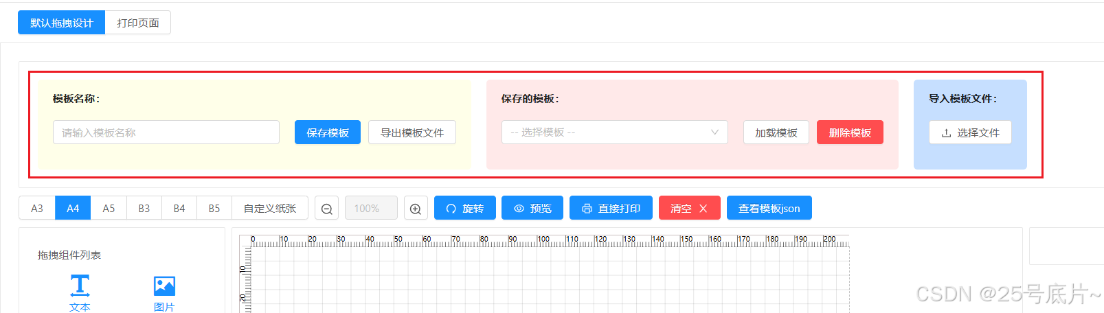 - 页面可以直接导入模板,并且展示需要打印的数据