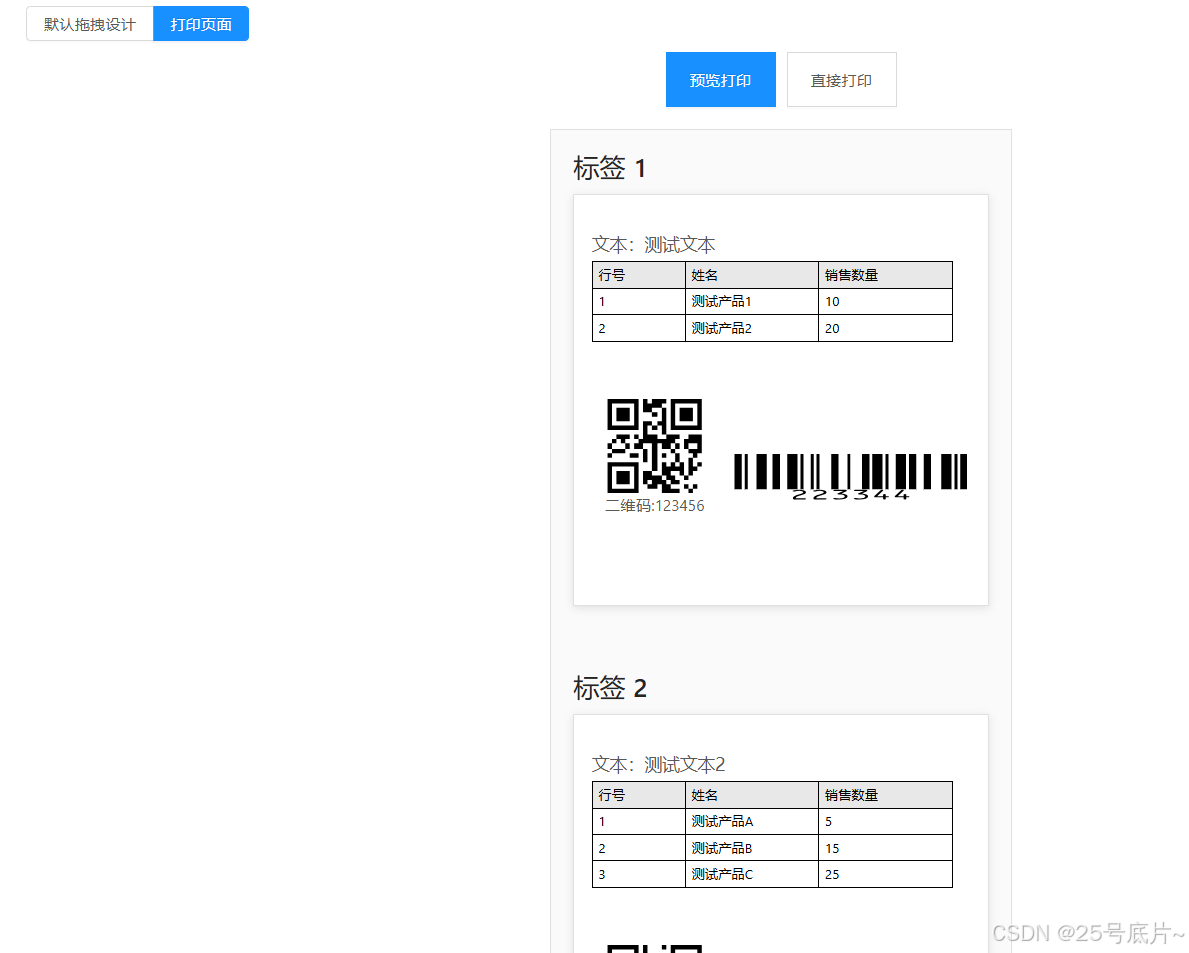 - 预览打印:浏览器自带的打印工具;直接打印:hiprint客户端直接打印