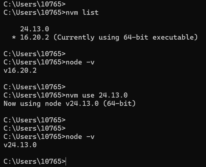 系统安装了多个 Node.js 版本,可以敲下面的命令,指定使用哪个版本。