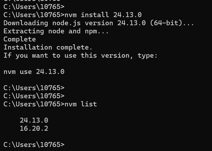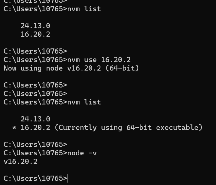 如下,安装 v16.20.2 版本,使用 nvm list 查看已安装的 Node.js 版本