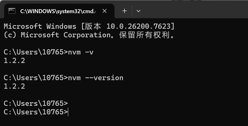 打开 CMD 命令窗口,敲 nvm -v 查看版本信息,验证下环境变量是否已经添加。