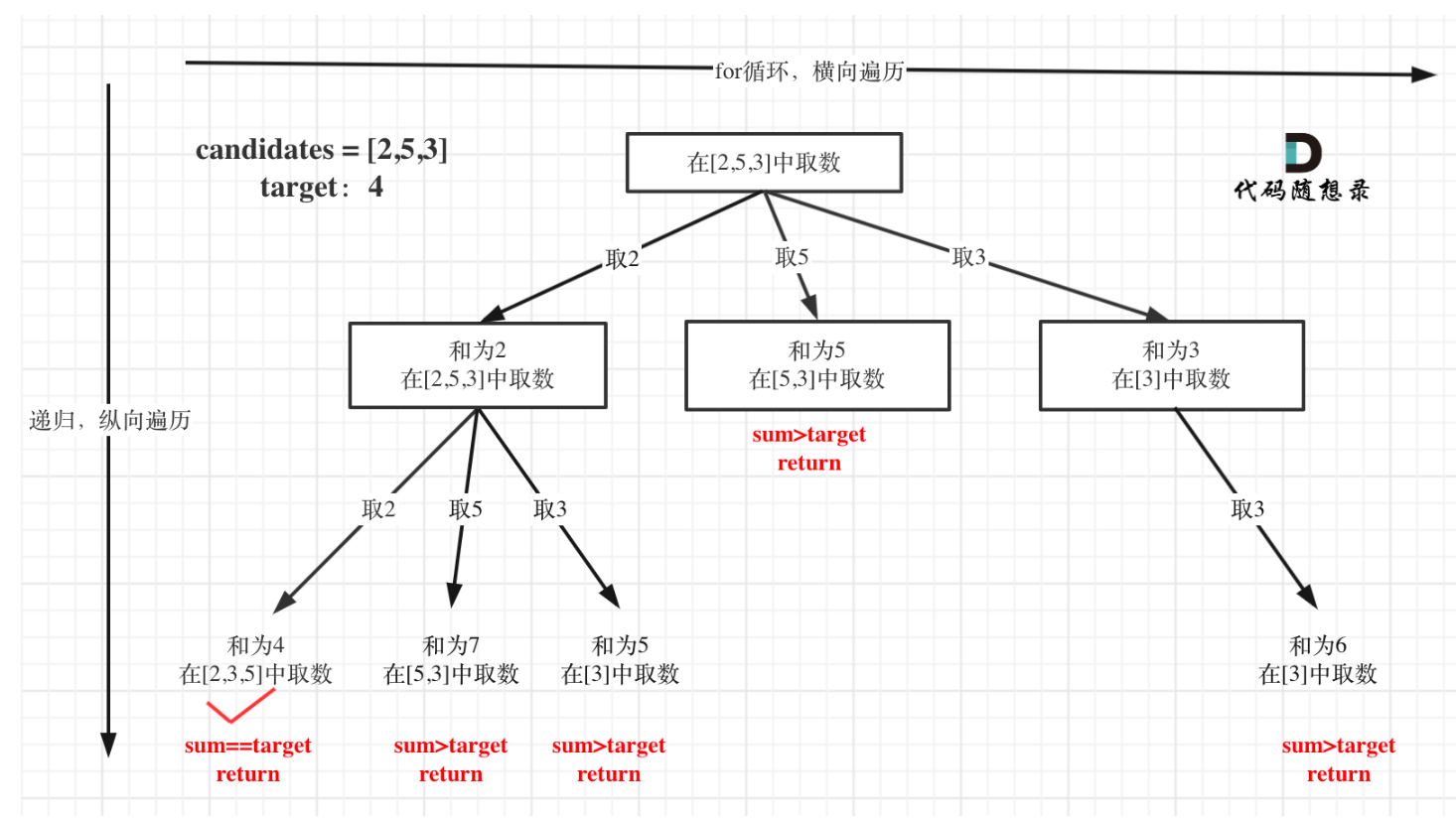 // 剪枝条件:当前路径和超过目标值,无需继续递归,直接返回(减少无效递归)