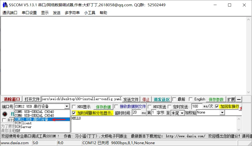 打开PC端的串口调试工具,可以识别出一个USB串行设备,如下: