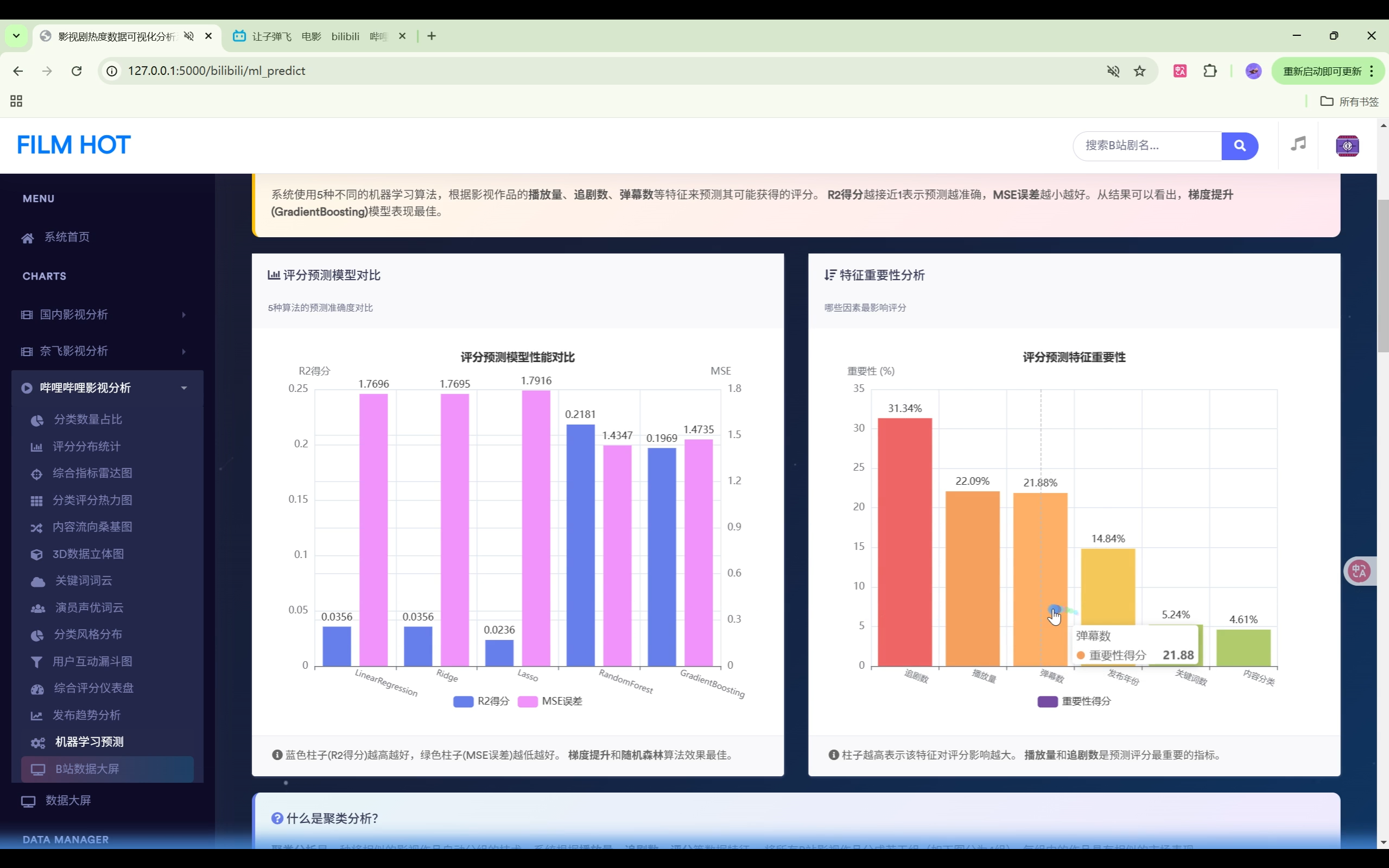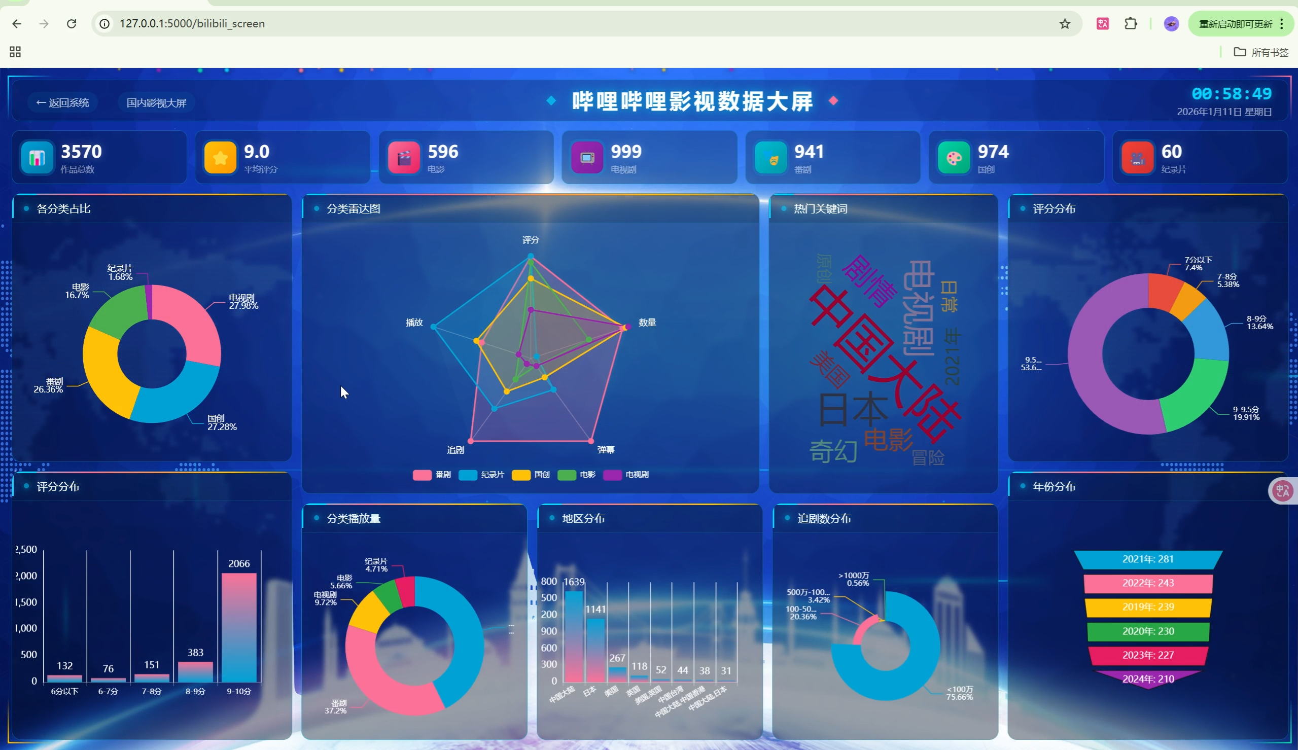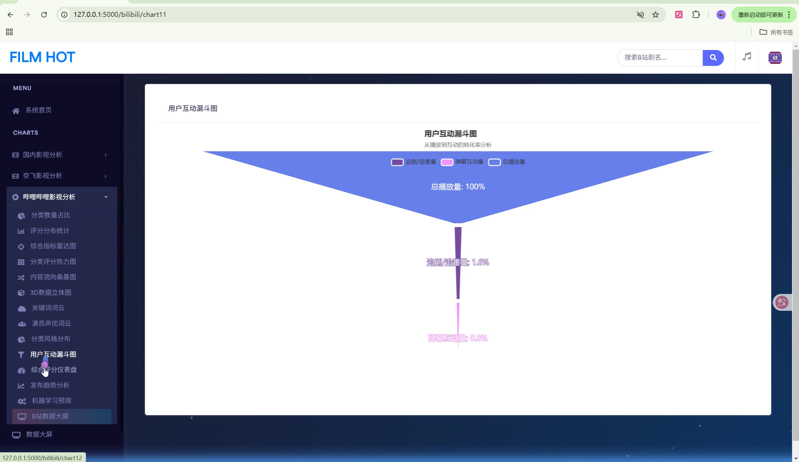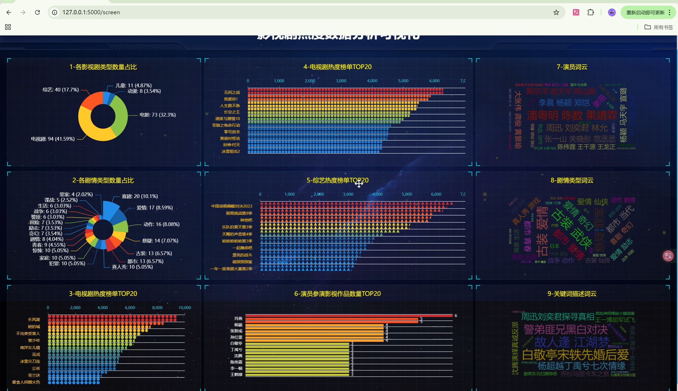 | 数据大屏 | 2个 | 影视剧大屏、B站科技大屏 |