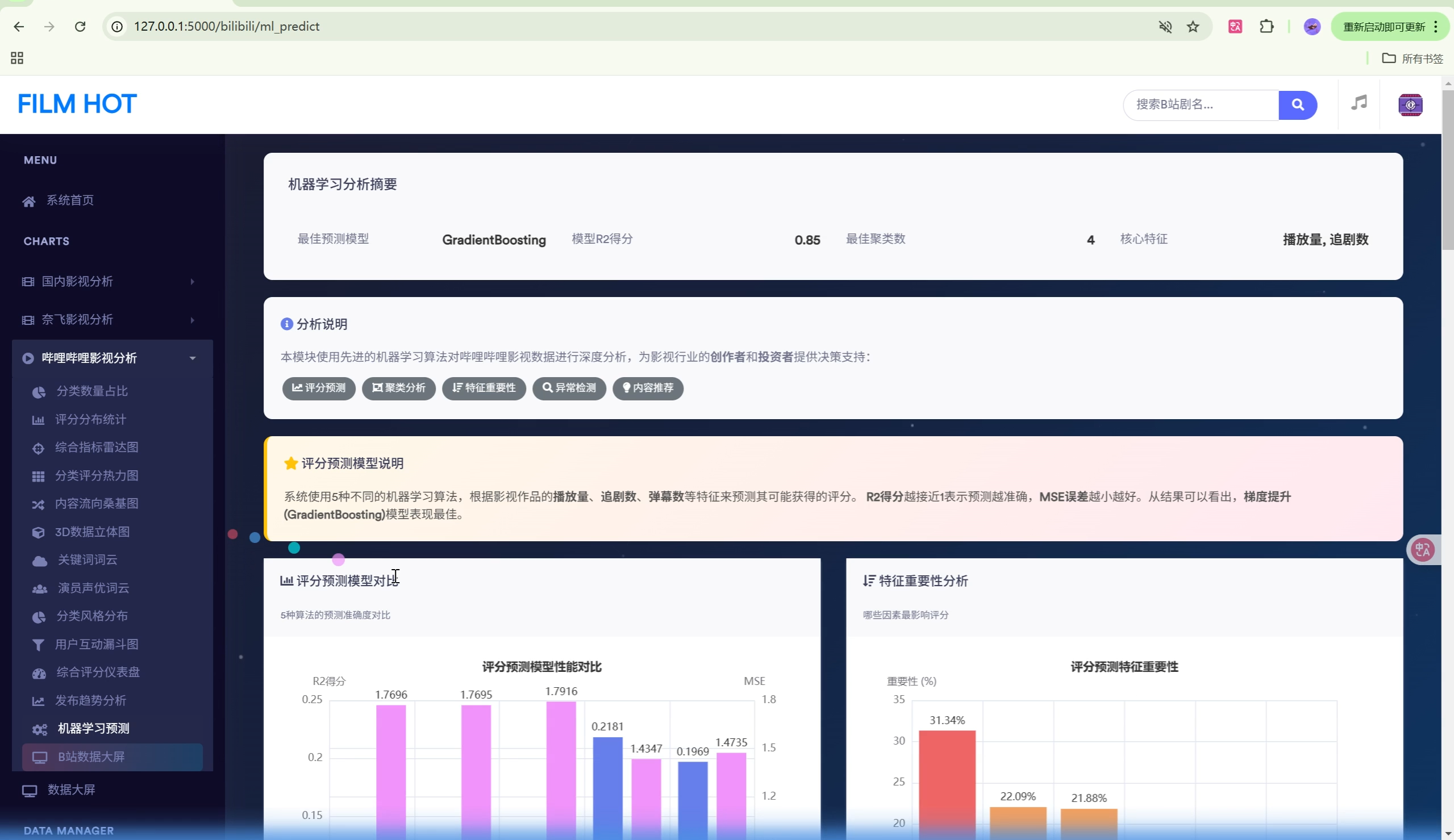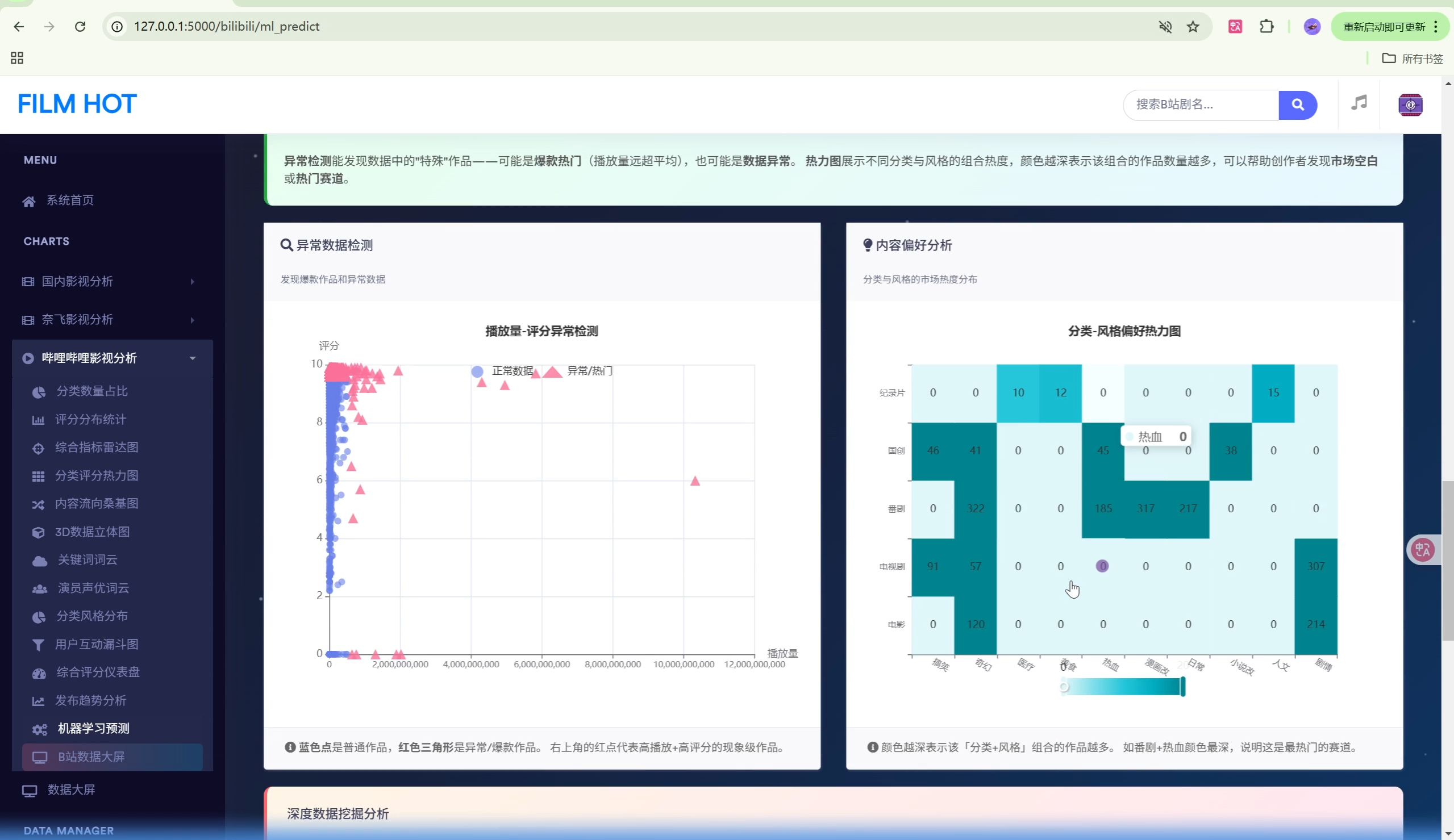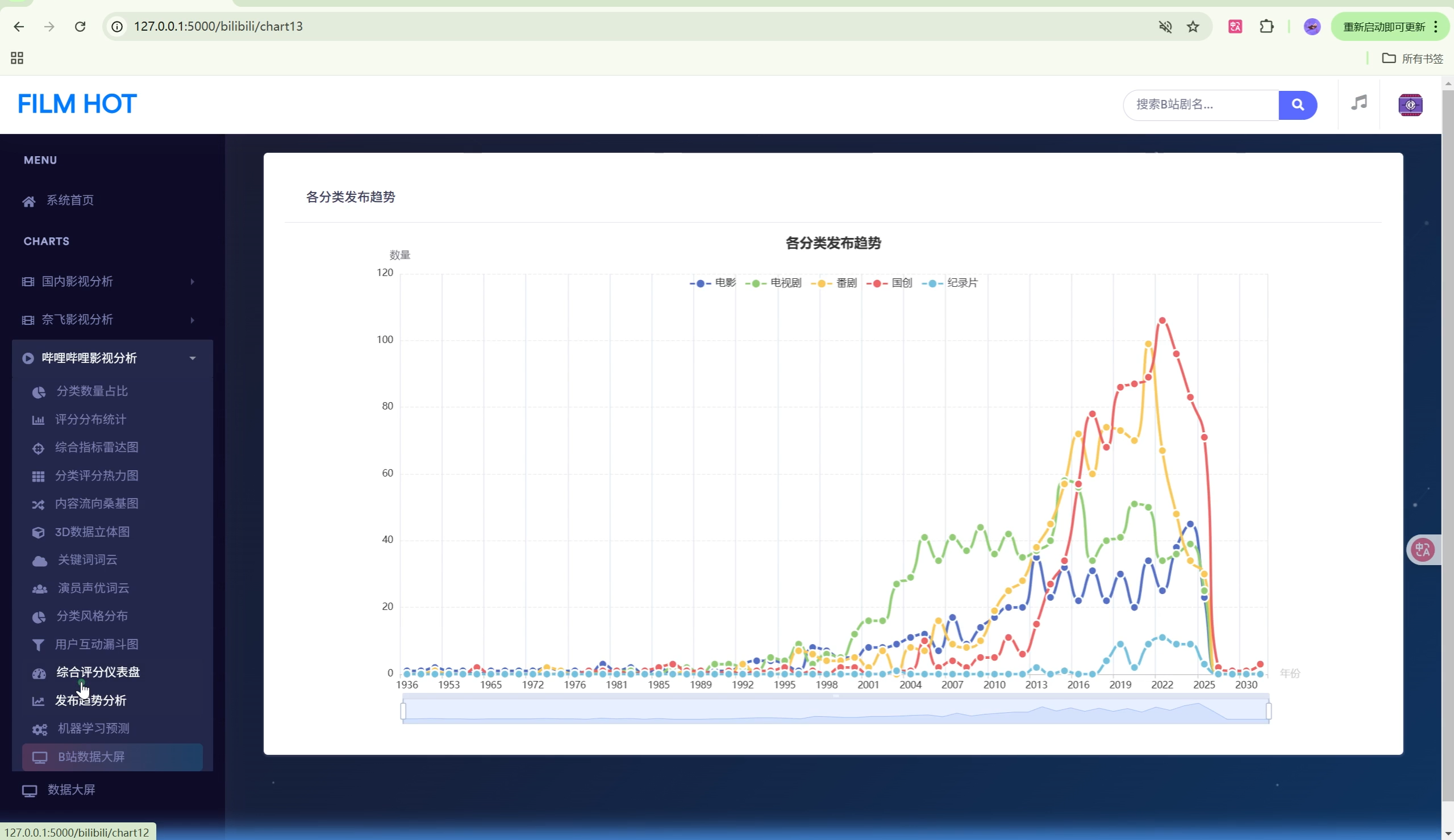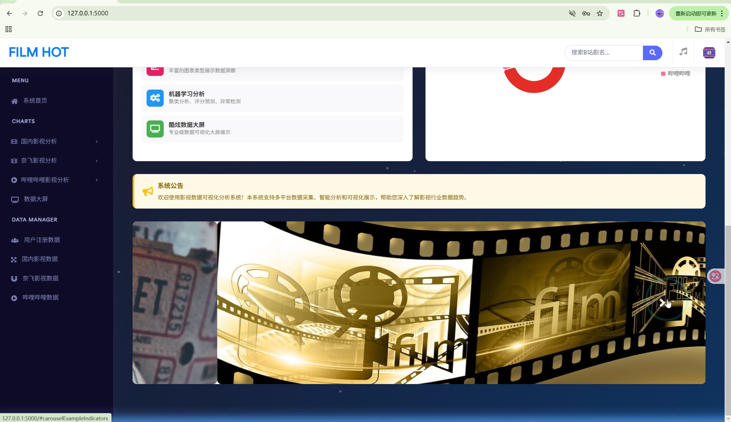 | 数据大屏 | 2个 | 影视剧大屏、B站科技大屏 |