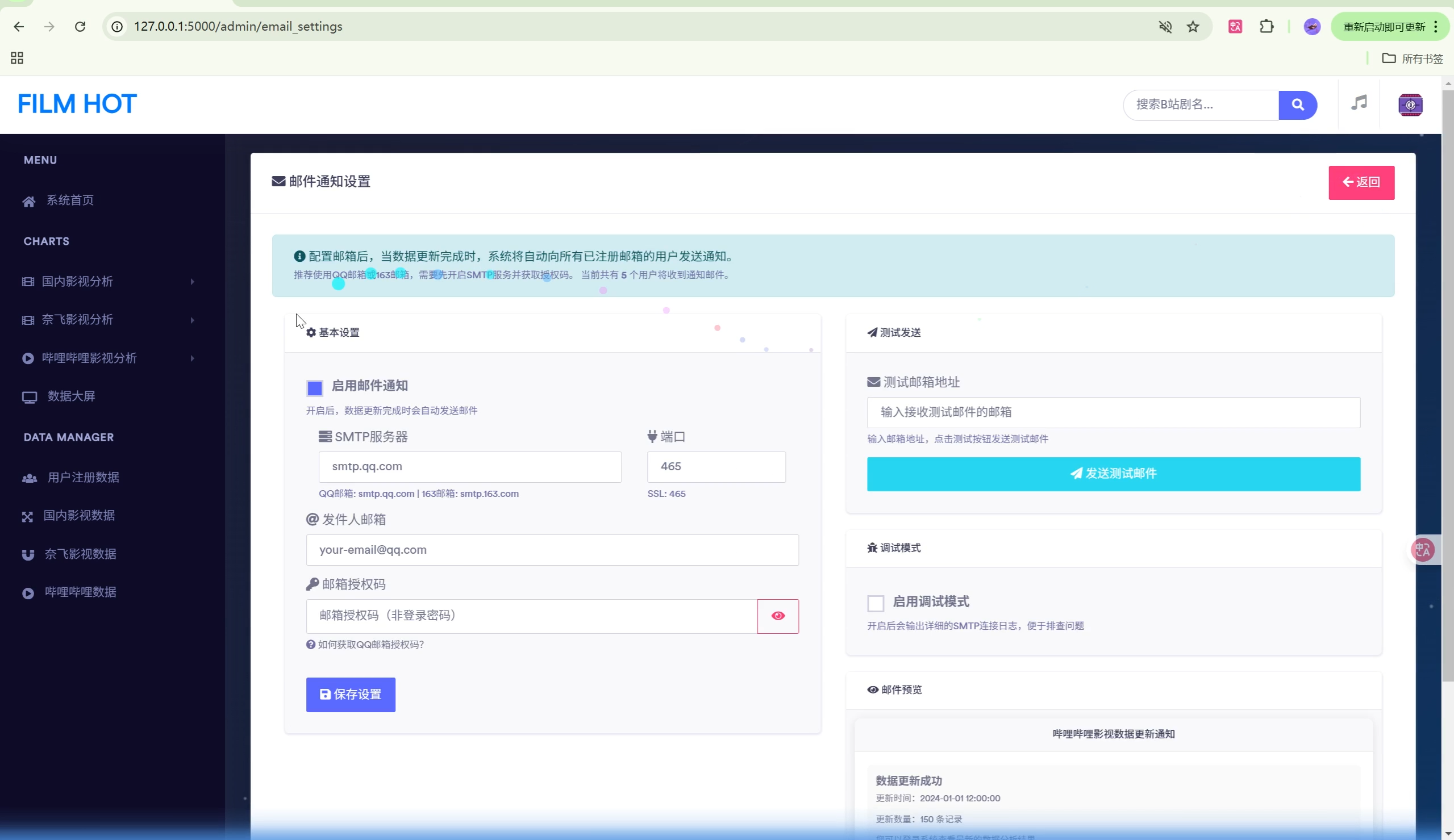 | 邮件通知 | 数据更新完成后自动发送邮件通知 |