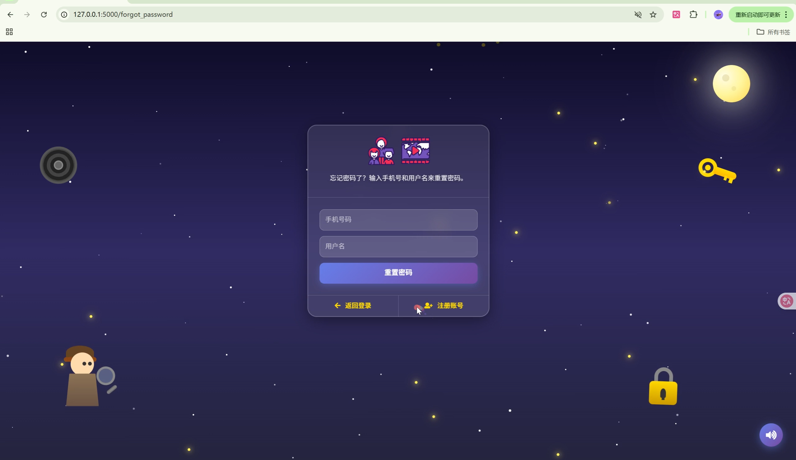 - 炫酷登录界面:卡通动画、粒子背景、音效交互
