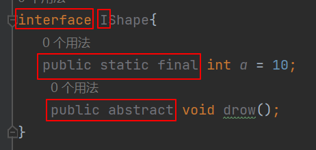 2.接口中的成员变量 默认时 public static final 的,一般情况下不写。