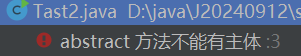 当一个方法被 abstract 修饰后,该方法不能含有主体,否则会报错(不能含有{})