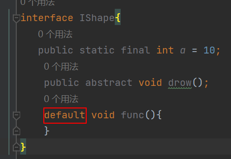 5.Java8后,允许在接口中定义一个 default 方法,允许抽象方法可以有具体实现(abstract 允许方法没有具体实现)