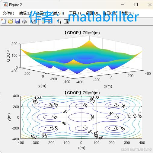 - GDOP 的三维曲面图与等高线地形图;