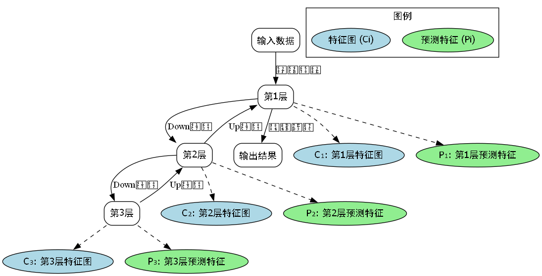其中, P k P_k Pk表示第 k k k层的特征图, M k M_k Mk是骨干网络第 k k k层的输出, U p ( ⋅ ) Up(·) Up(⋅)表示上采样操作, C o n v ( ⋅ ) Conv(·) Conv(⋅)表示卷积操作。这种设计使得模型在不同尺度上都能获得良好的特征表示。