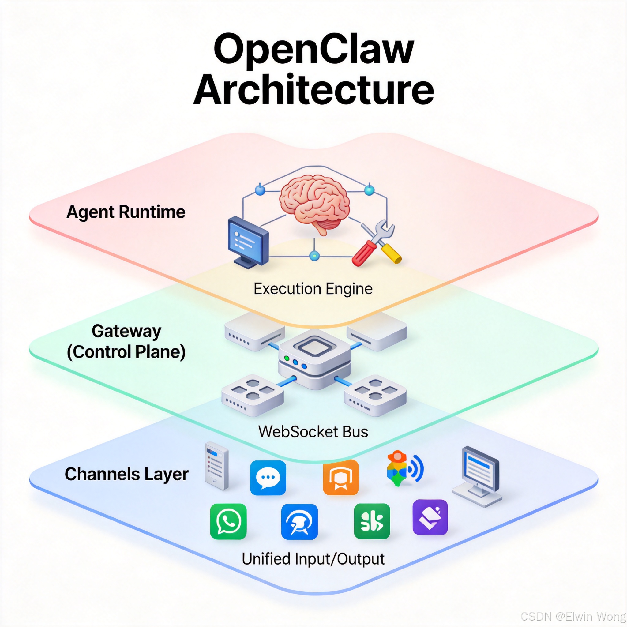 Message对象。 - WebSocket 长连接:Gateway 与具体的执行单元(Agent)之间通过 WebSocket 保持全双工通信。这使得 Agent 可以部署在任何地方(本机、内网服务器、甚至另一台树莓派),只要能连上 Gateway 即可。