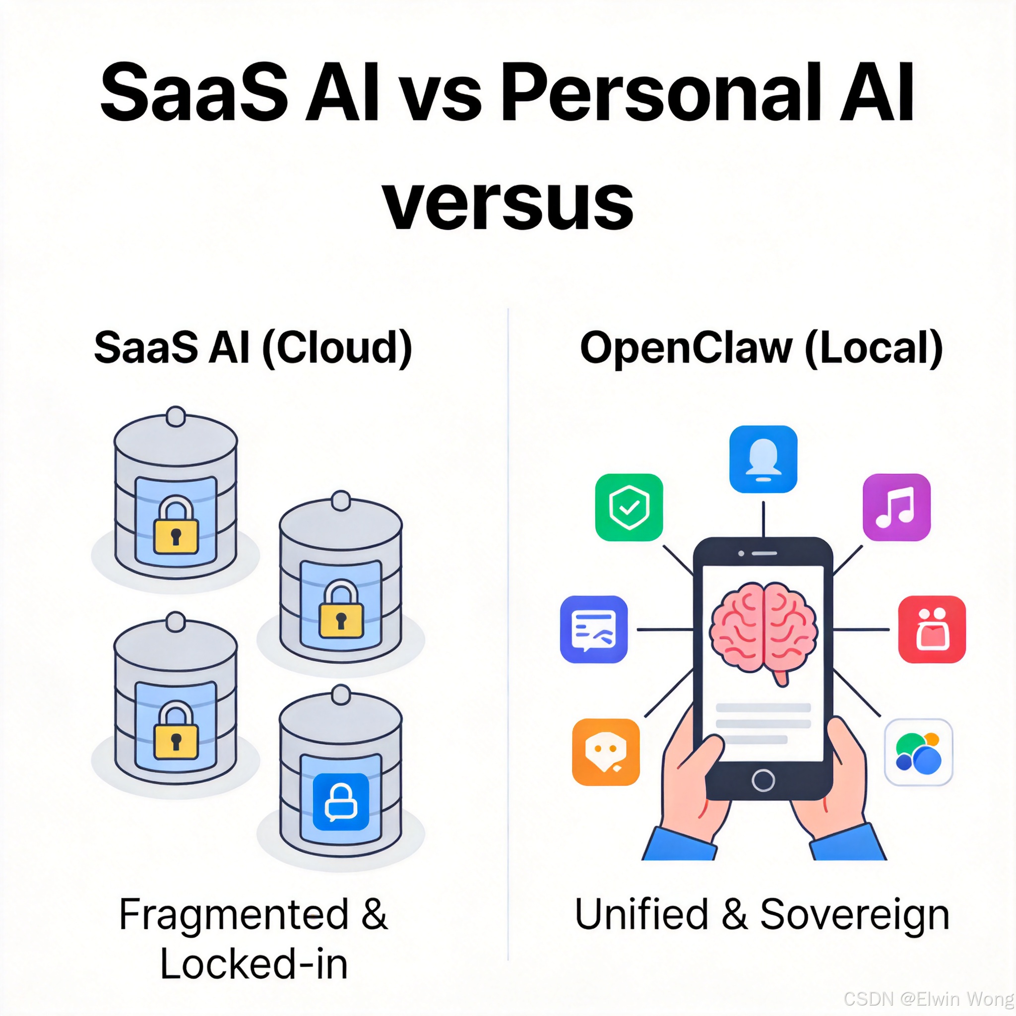 目前的 AI 服务大多是 SaaS 模式,你是在租用别人的大脑。而 OpenClaw 强调 Bring Your Own Device (BYOD)。