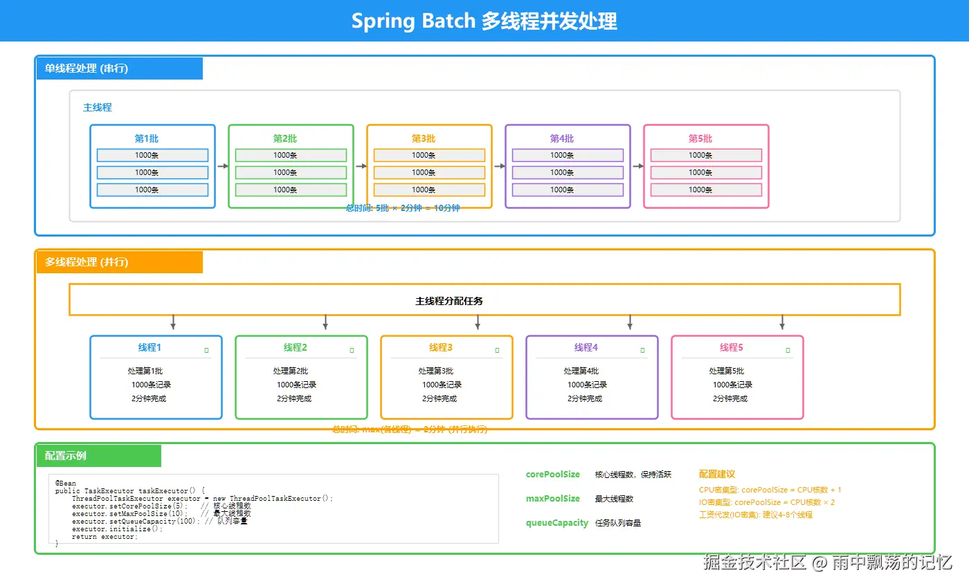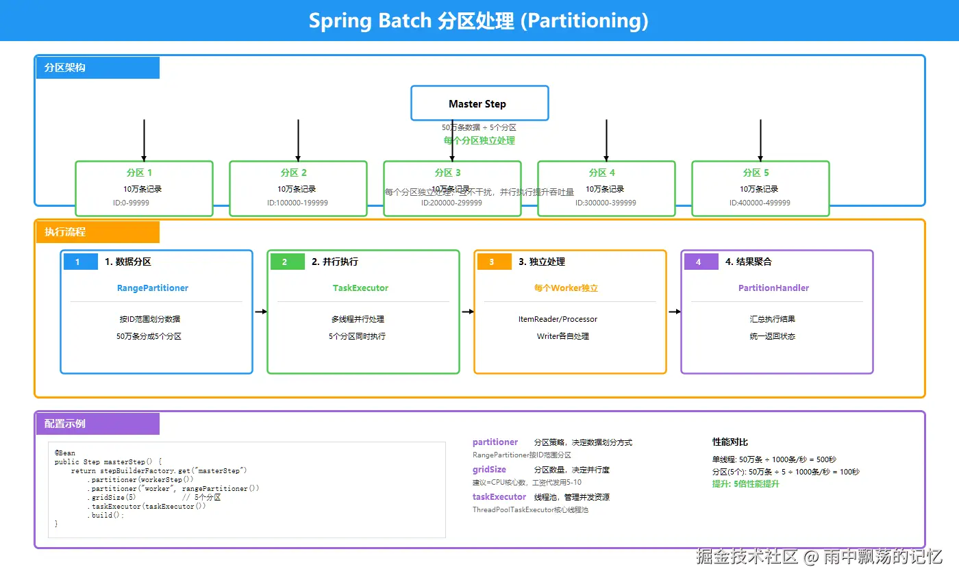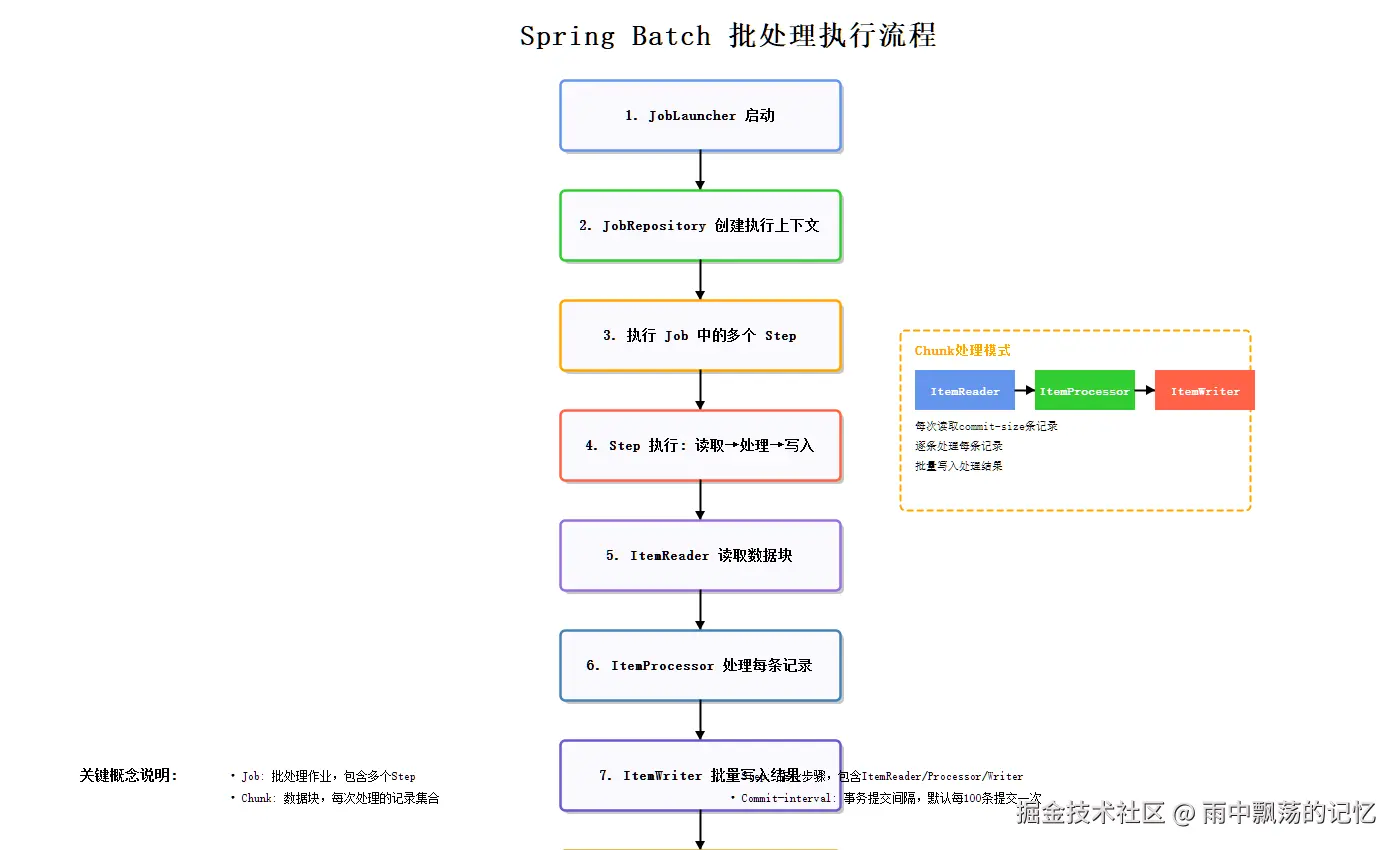 Spring Batch作为成熟的批处理框架,提供了完整的解决方案来处理大规模批量数据。