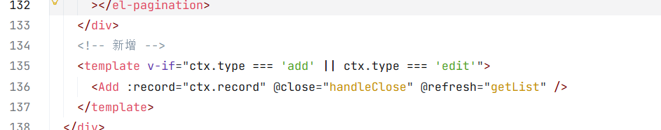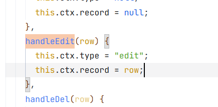 当点击编辑的时候会把row传给ctx.record,然后add组件通过组件标签的:record="ctx.record",会得到这个值,然后isEdit的返回结果为true,下面的计算属性就会执行编辑相关的操作,点击新增的时候,没有row,这个ctx.record为null,所以record.id为undefied,这个isEdit返回结果为false,执行:后的操作