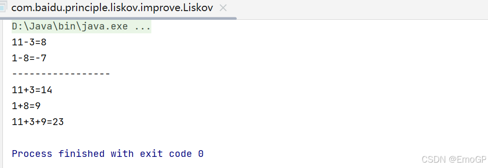我们发现原来运行正常的相减功能发生了错误,原因就是类B无意中重写了父类的方法,造成原有功能出现错误,在实际编程中,我们常常会通过重写父类的方法完成新的功能,这样写起来虽然简单,但整个继承体系的复用性会比较差,特别是运行多态比较频繁的时候