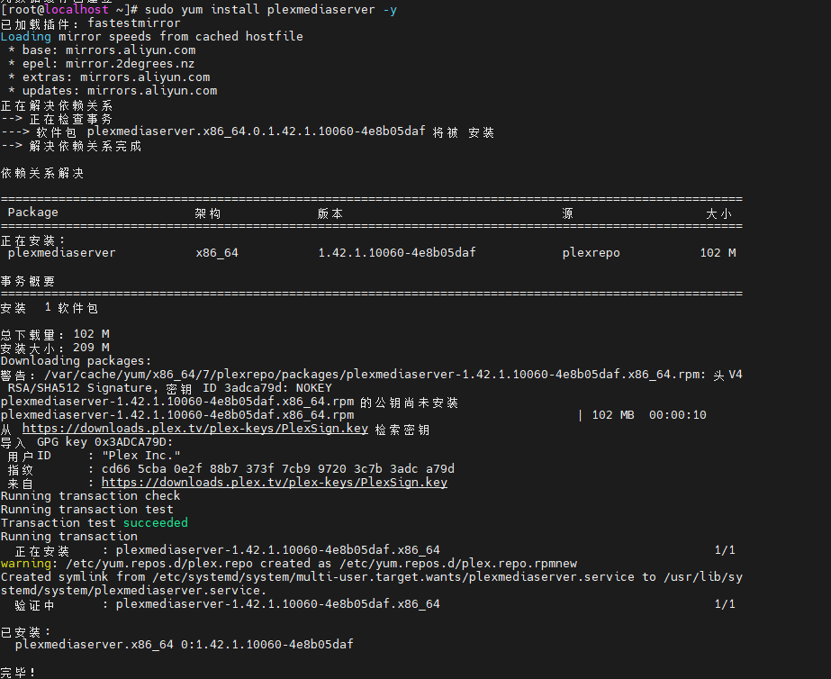 sudo yum install plexmediaserver -y
