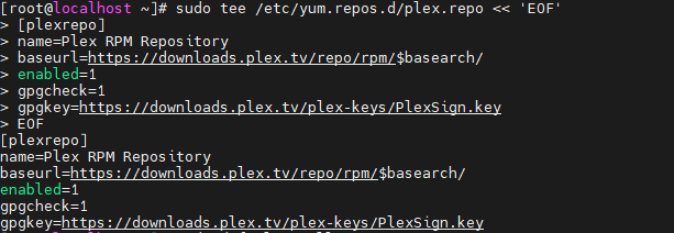 sudo tee /etc/yum.repos.d/plex.repo << 'EOF'