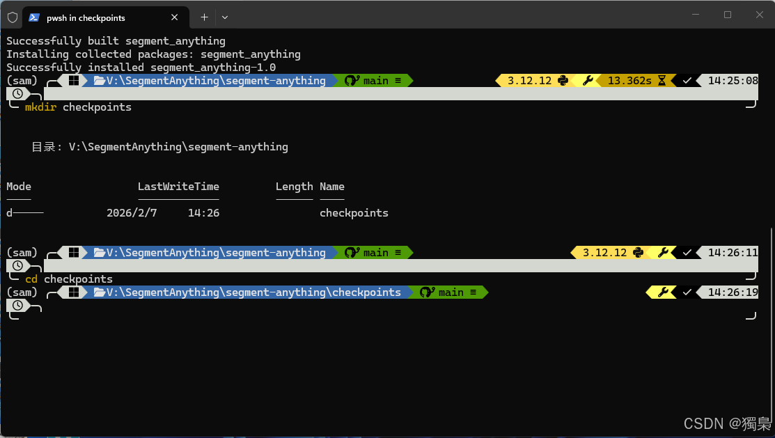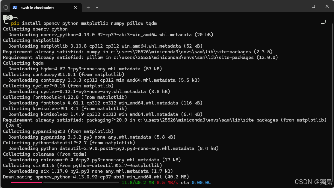 建议 不要使用 base 环境,单独为 SAM 创建一个虚拟环境,避免依赖冲突。