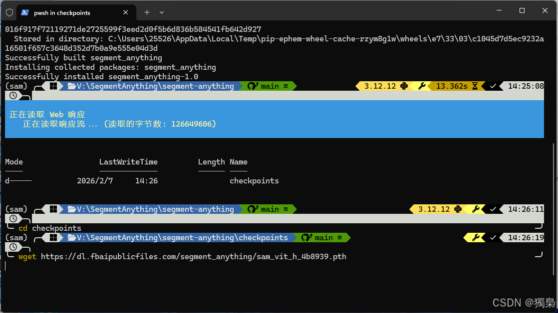 wget https://dl.fbaipublicfiles.com/segment_anything/sam_vit_h_4b8939.pth