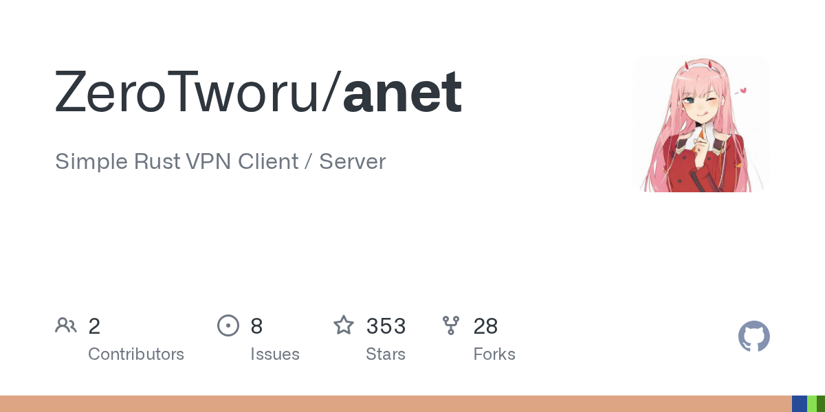 - 💡 推荐语: 专为追求简洁高效而生的ZeroTworu/anet,是一款基于Rust语言开发的轻量级VPN客户端与服务器,兼具强大性能与现代化开发优势。