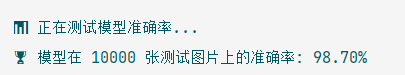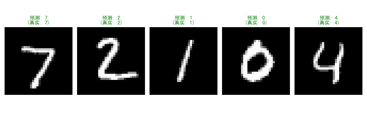 Loss 曲线: 在训练过程中,你会看到 Loss 值从 2.3 左右迅速下降到 0.1 以下,这说明模型正在快速"学习"数字的特征。